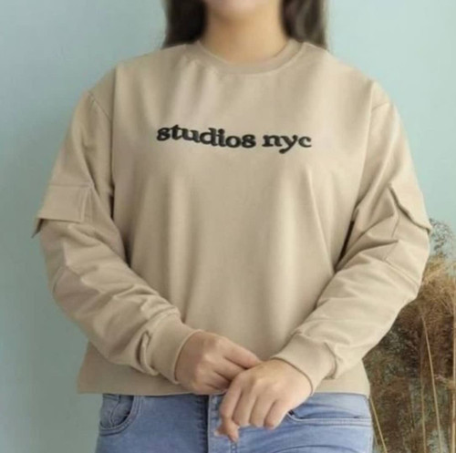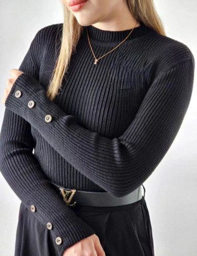 بلوز بافت یقه گرد آستین دکمه دار زنانه