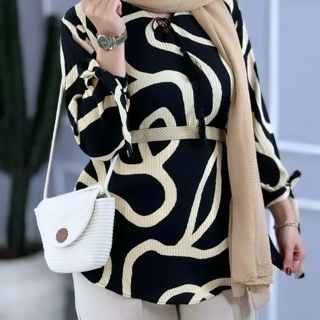 بلوز بافت یقه گرد آستین دکمه دار زنانه